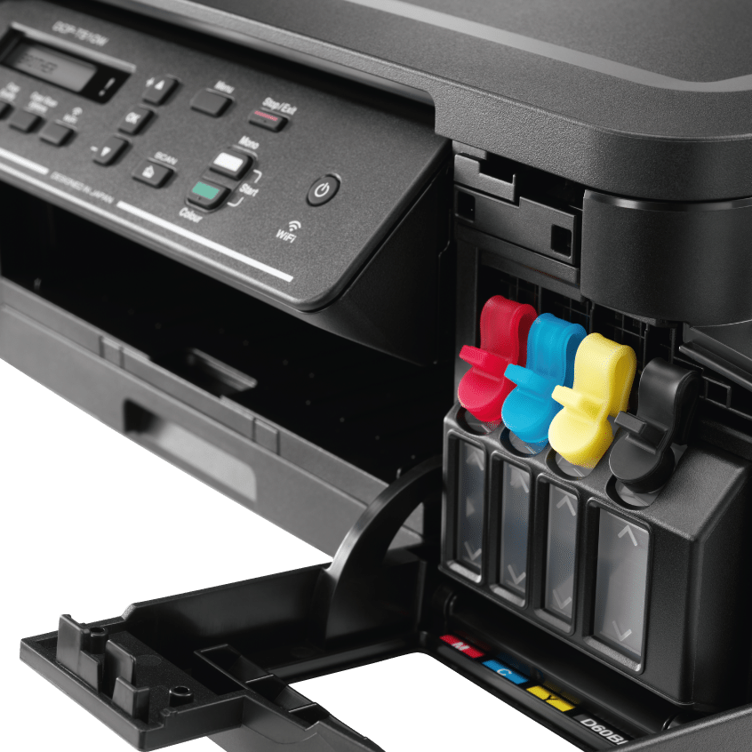 - Tanque de tinta incorporado de fácil recarga para ahorrar espacio. Evite derrames con las botellas de tinta originales Brother