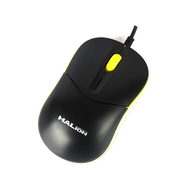 Mouse Halion C/Cable Ha-M1965 Yellow/Black, se amolda con toda naturalidad a la palma de la mano, con un tamaño supercompacto. Los laterales suavemente curvados son muy confortables. Mouse óptico surf, conector USB, con cable, color negro con distintos colores, marca Halion.