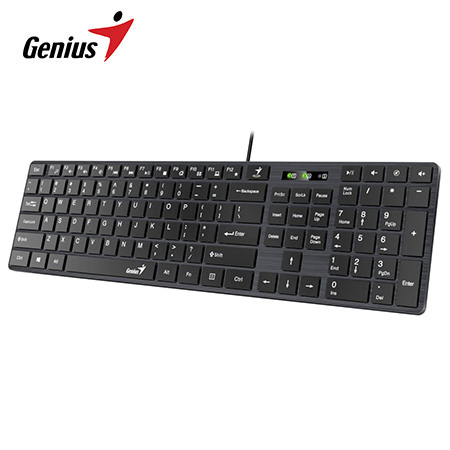 Teclado Genius Slimstar 126 USB Multimedia Black SP (0027250) (PN 31310017401), diseño ultra delgado y elegante para brindar una experiencia de escritura silenciosa y tranquila. Es un teclado personalizable. Junto con el Motor Inteligente Genius, proporciona un control completo de las 12 teclas de función exclusivas para web, aplicaciones, redes sociales o integración de negocios.