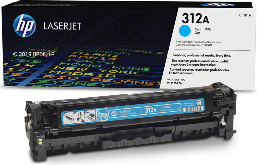 Tóner Hp Laser jet Pro CF381A (312A) Cyan con Rendimiento para 2,700 Paginas.