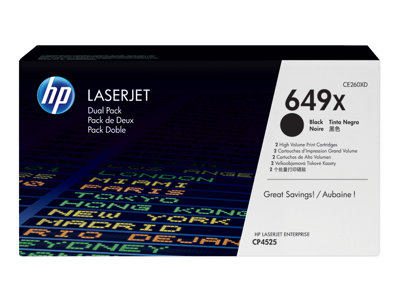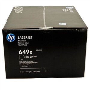 Los cartuchos de tóner HP (Dual Pack) 649XD Negro de código CE260XD cuentan con altos estándares de calidad de impresión y al mejor precio del mercado, recuerda que un cartucho que se encuentra en venta de tóner HP original cuentan con un chip original fabricada especialmente para contabilizar la cantidad de impresión de alta calidad que usted realice en su impresora.